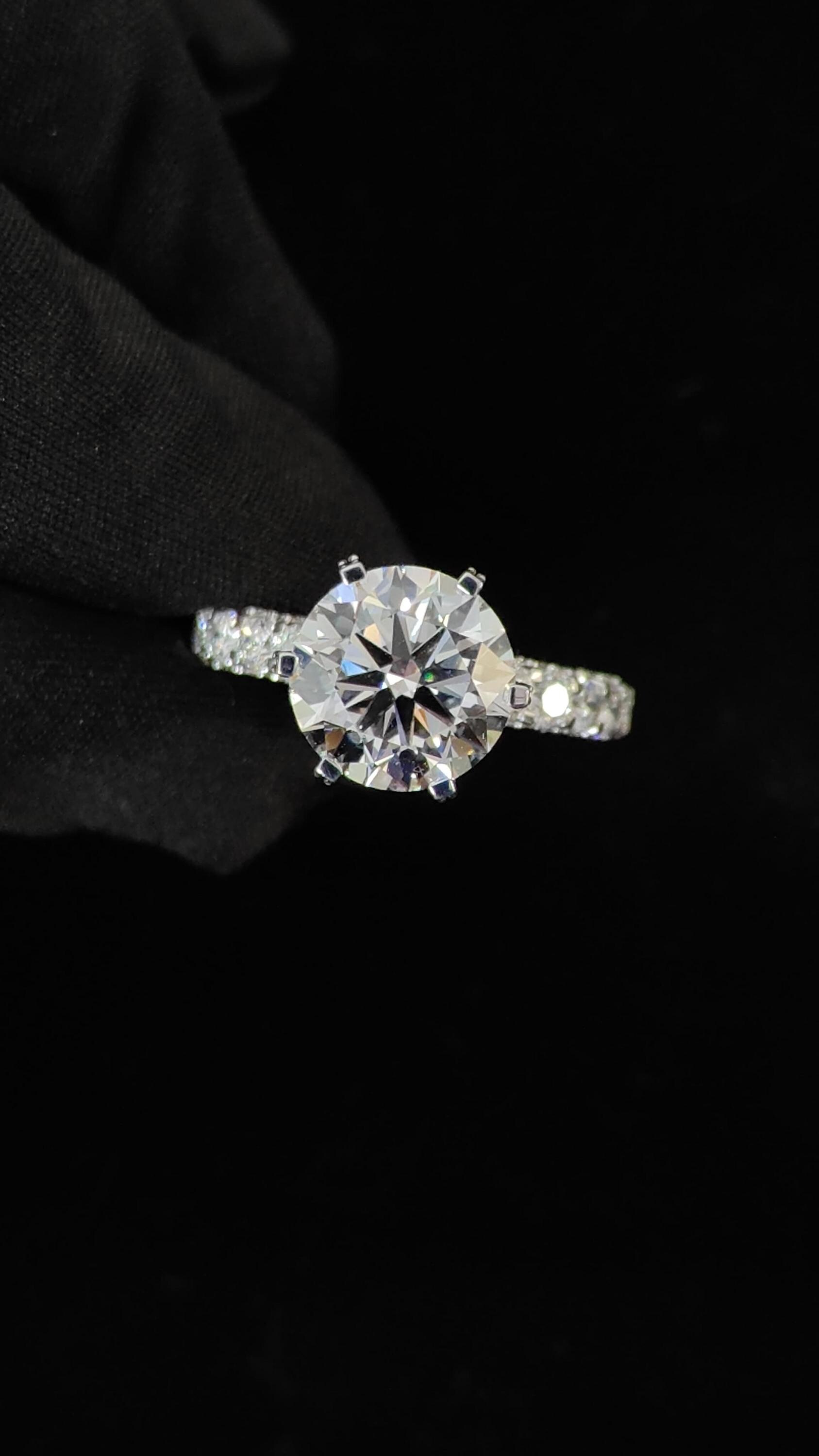 • Center Stone: 5.00 E-VS1 Round-cut lab-grown diamond