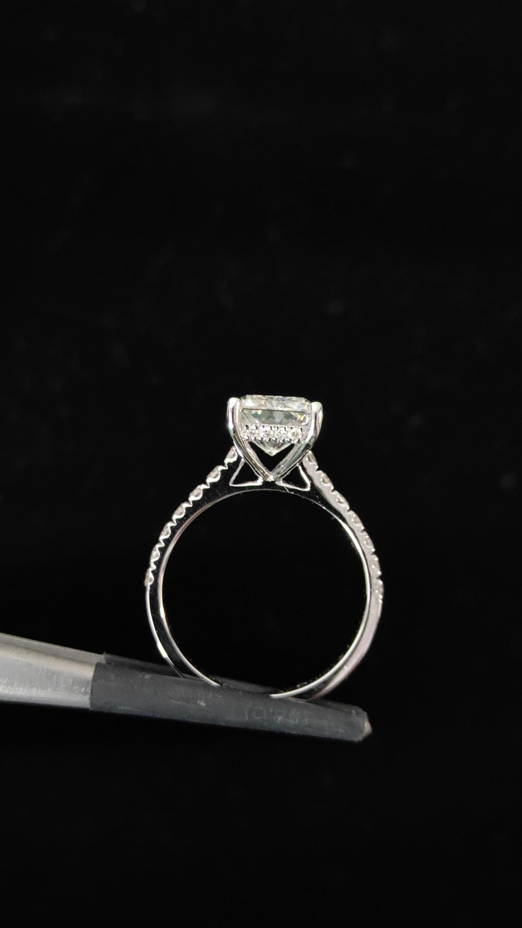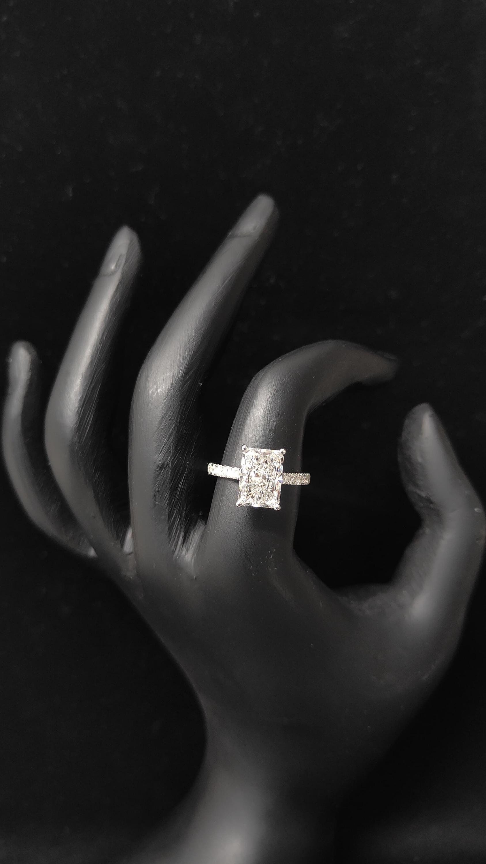 Make your forever moment unforgettable with this breathtaking 3.00 carat radiant cut diamond engagement ring. Expertly crafted in luminous white gold, this design features a dazzling hidden halo beneath the center stone and a cathedral-style setting for timeless elegance.