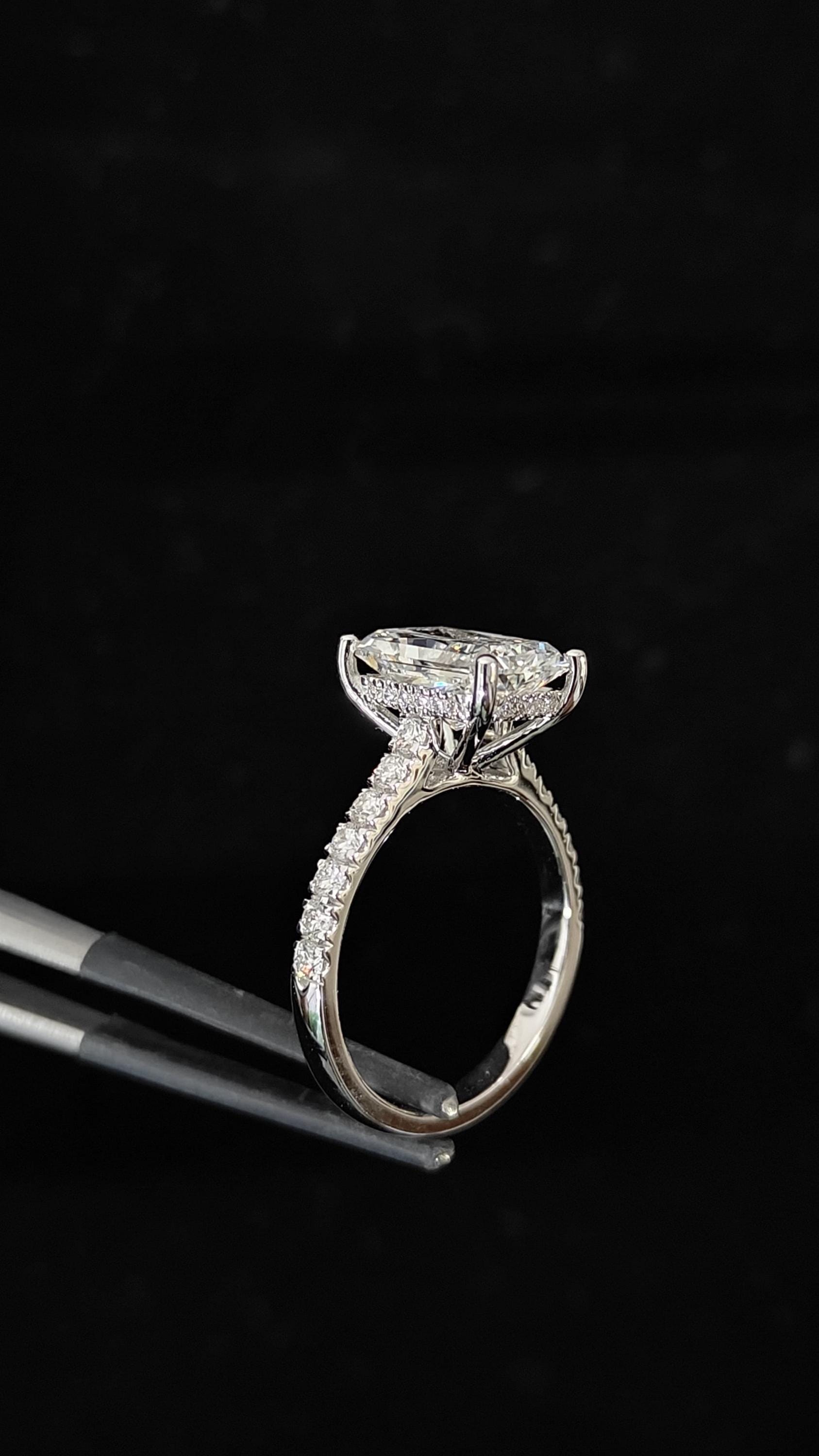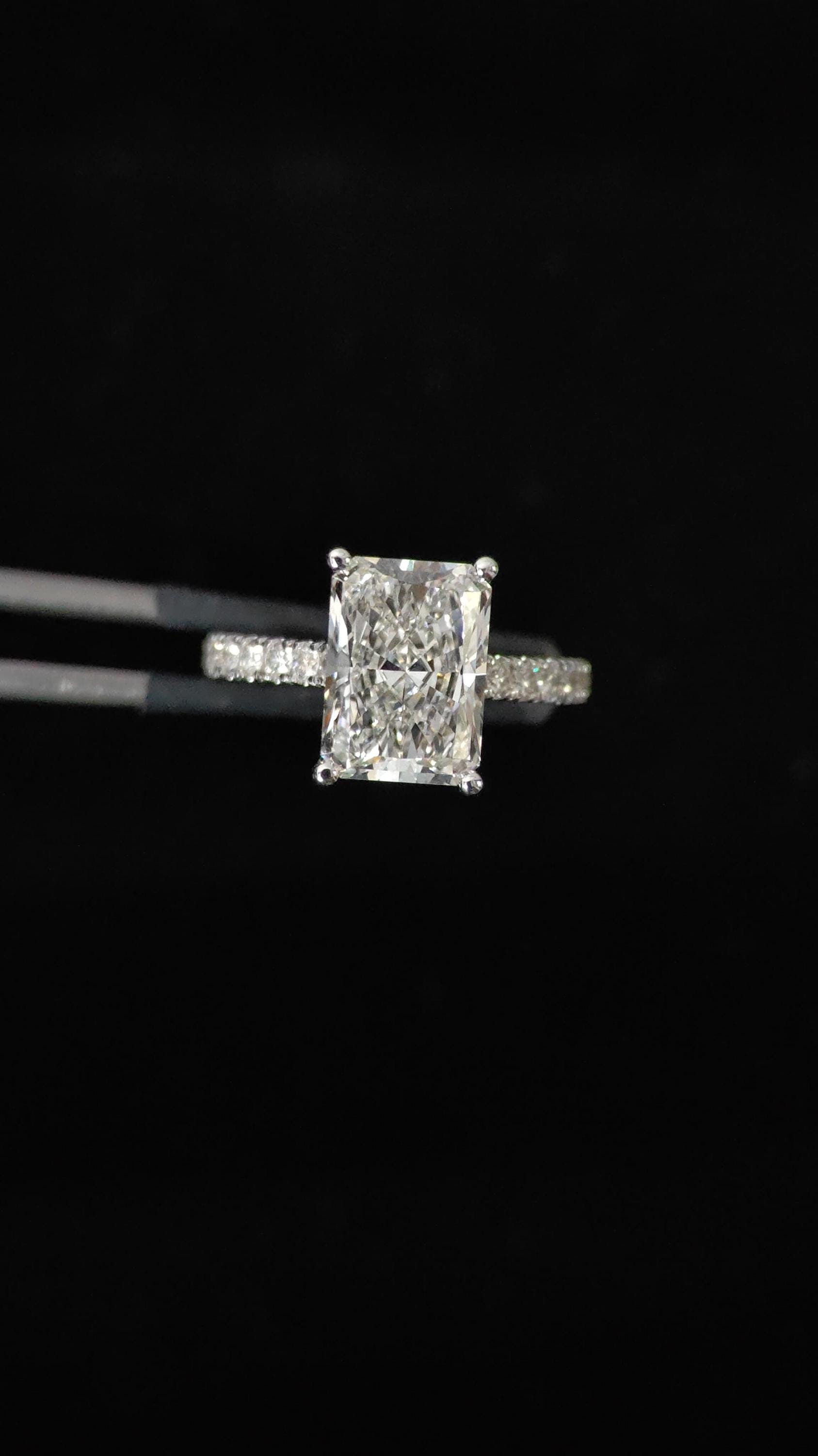 • Center Stone: 3.00 carat radiant cut (natural or lab diamond available)