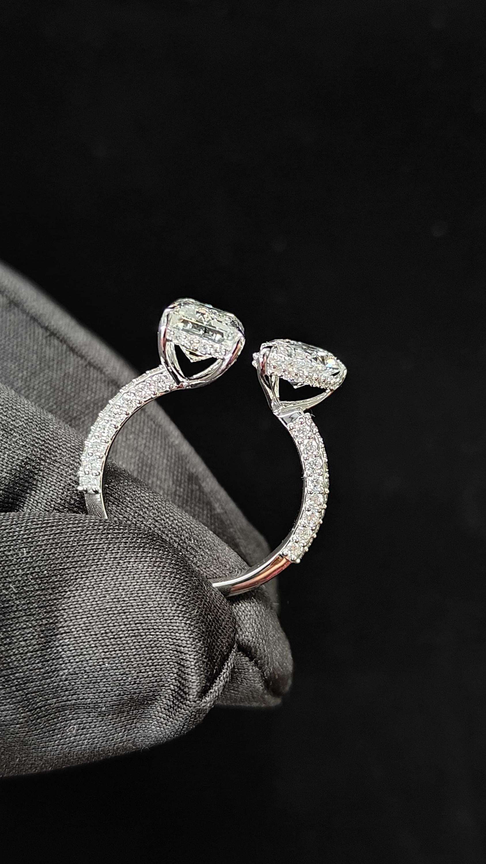 Perfect as an engagement ring, anniversary gift, or statement piece, this double-stone design blends modern sophistication with classic romance. Whether worn alone or stacked, it’s a captivating addition to any jewelry collection.