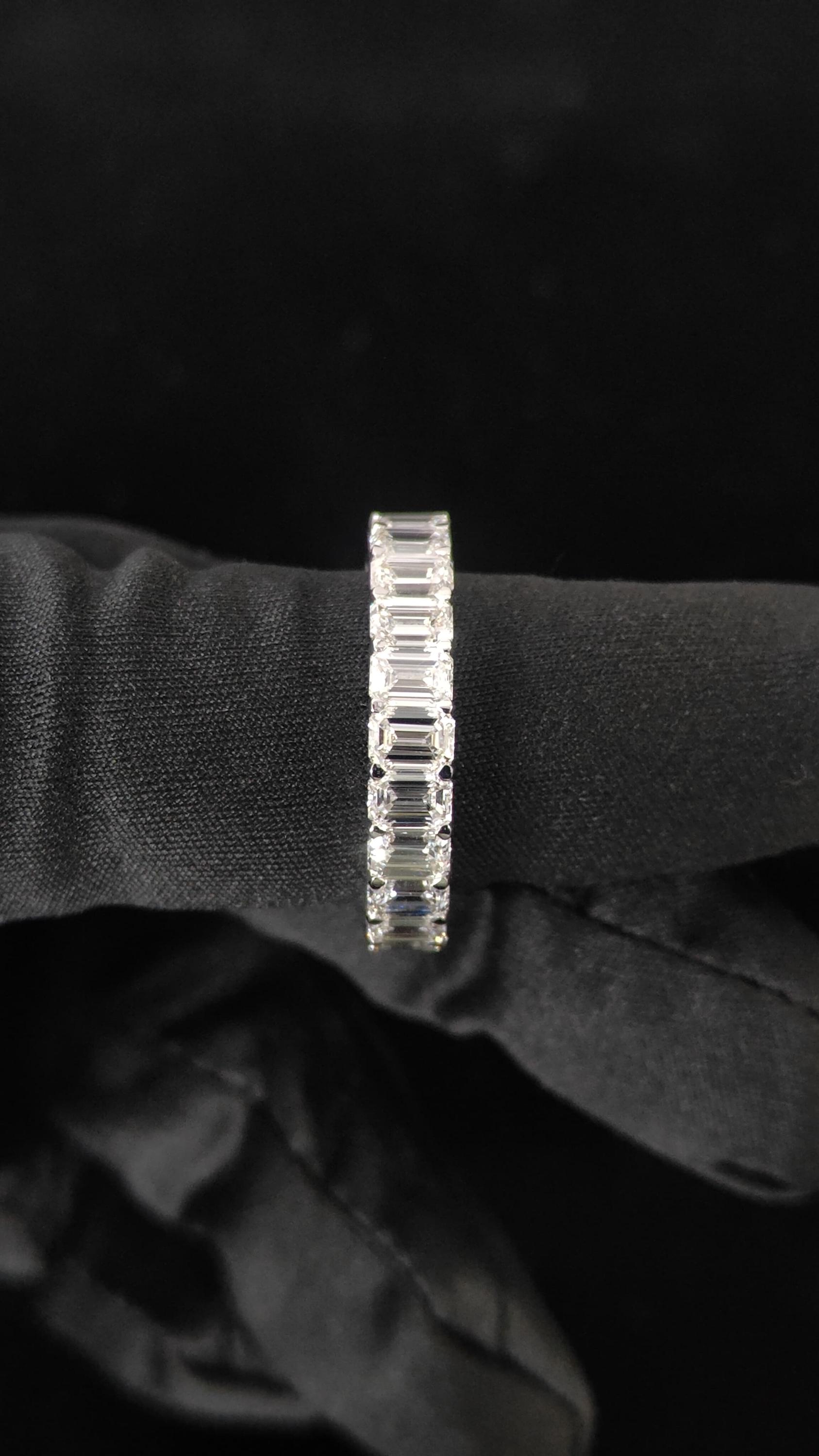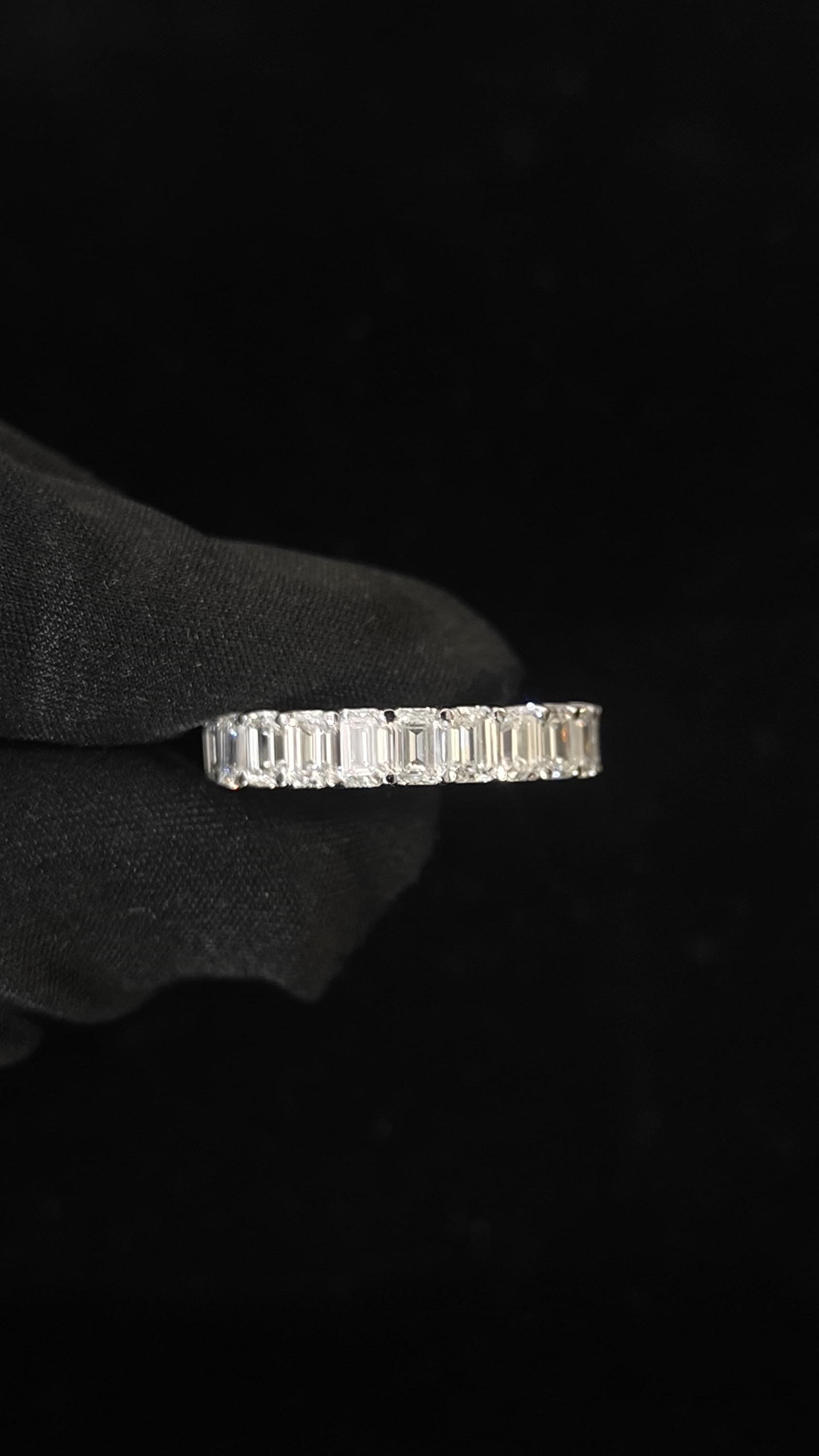 Elevate your everyday elegance with this stunning emerald cut diamond eternity band, designed for lovers of clean lines and modern luxury. Featuring a seamless row of perfectly matched emerald-cut diamonds, this ring offers timeless sophistication with a minimalist aesthetic.