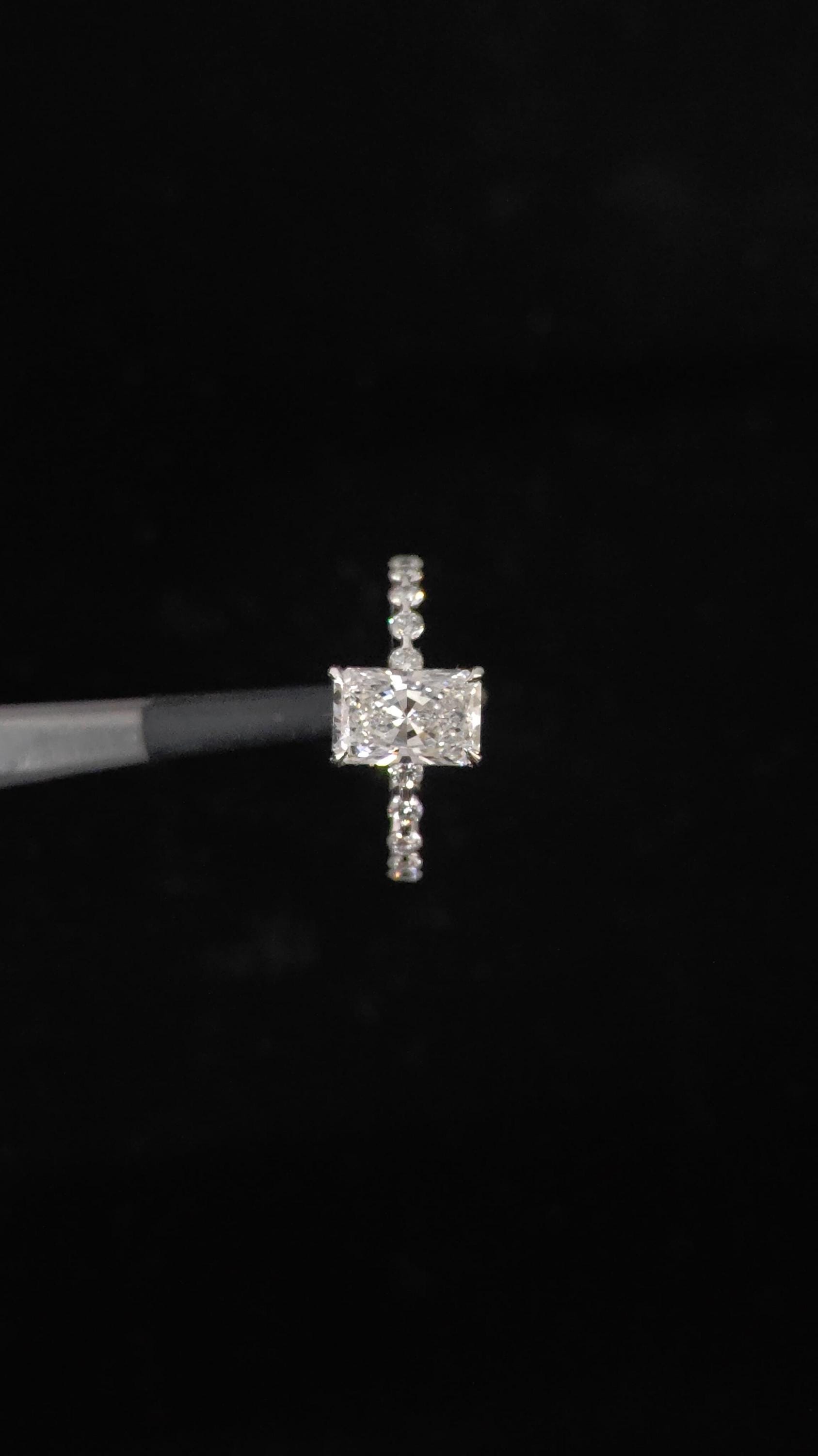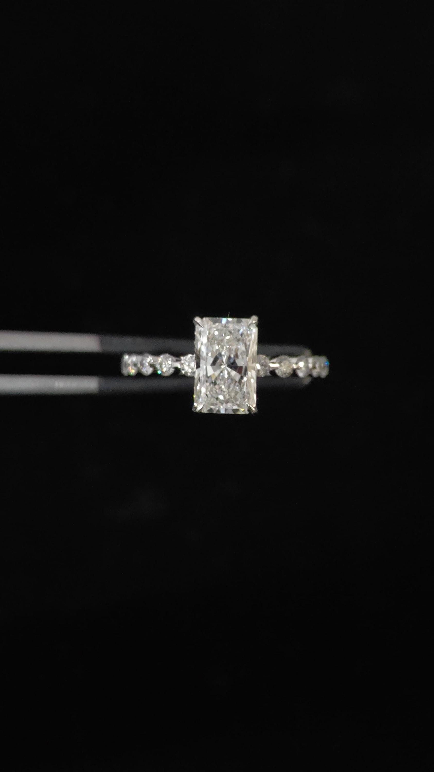 Celebrate your forever with this elegant lab-grown radiant cut diamond engagement ring, crafted in luminous 14K white gold. Featuring a beautifully proportioned 1.57 carat radiant-cut center stone in D color and VS1 clarity, this ring delivers exceptional brilliance with a clean, modern silhouette.